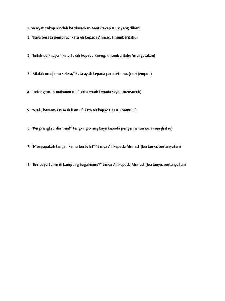 Ayat Cakap Ajuk Dan Ayat Cakap Pindah Pdf