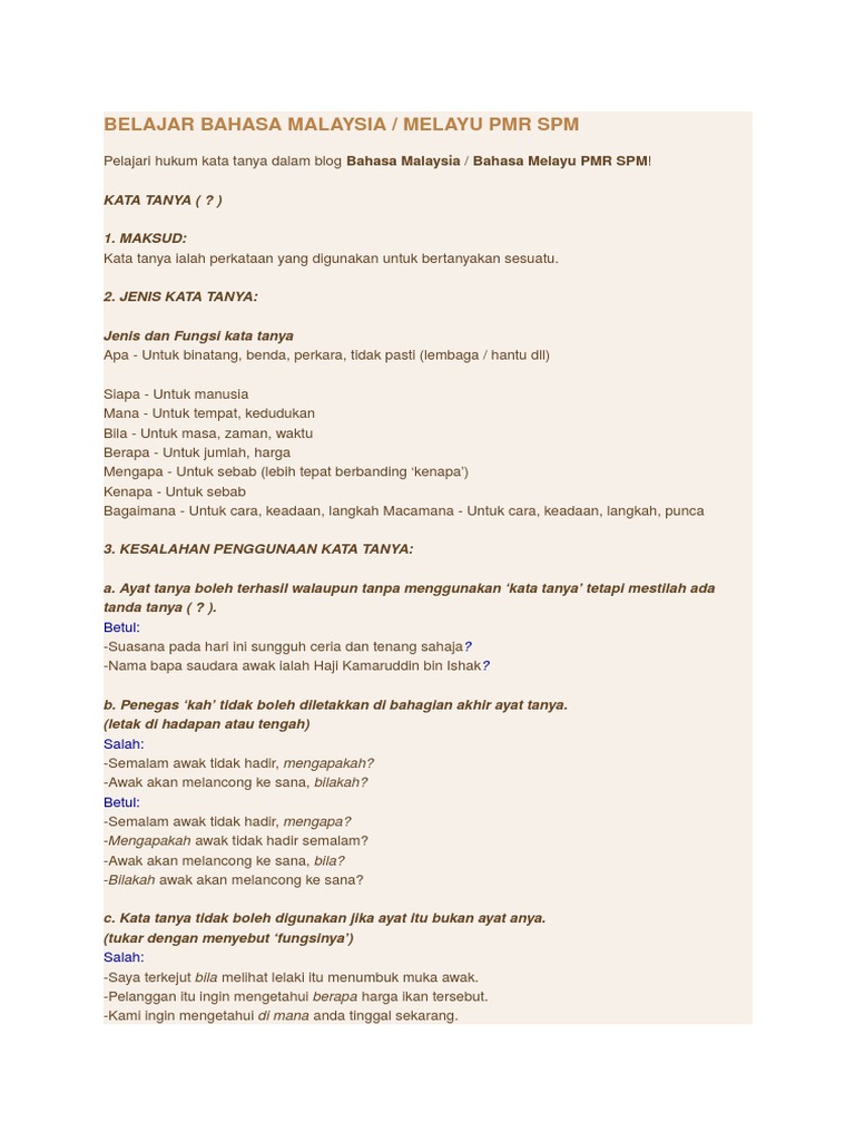 Apakah Beza Antara Dengan Kata Tanya Ayat Tanya Pdf